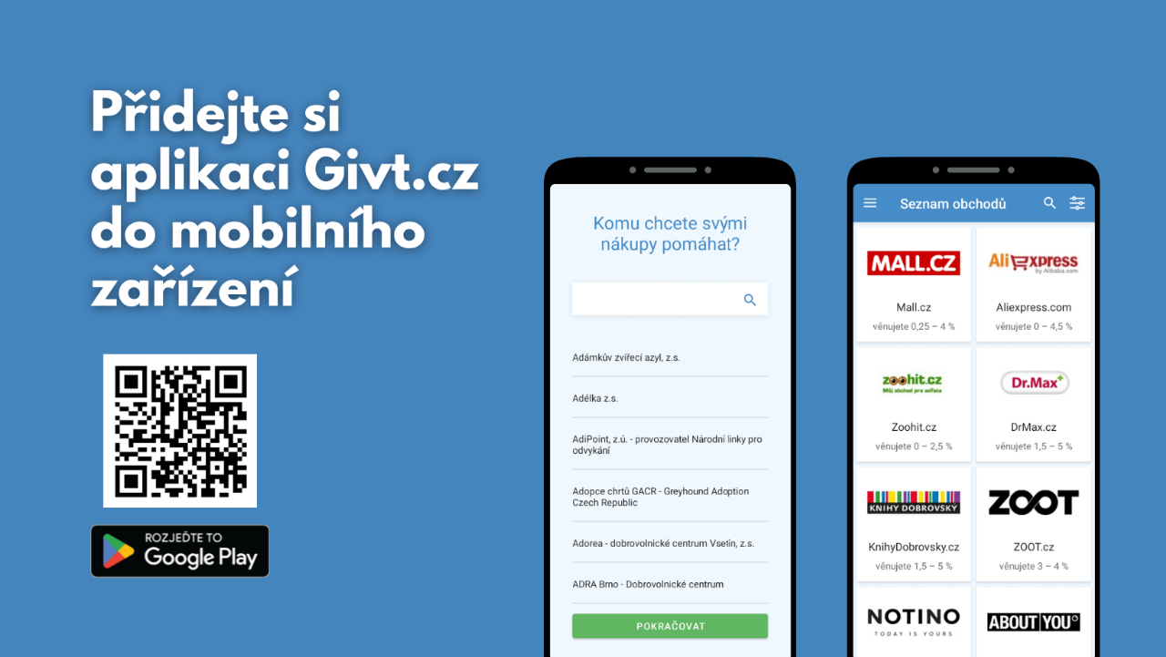 Přidali jsme se do projektu GIVT.cz. Pokud nakupujete na internetu, ať už oblečení, elektroniku, nebo dovolenou a nebo si objednáváte jídlo domů – můžete nám pomoci.